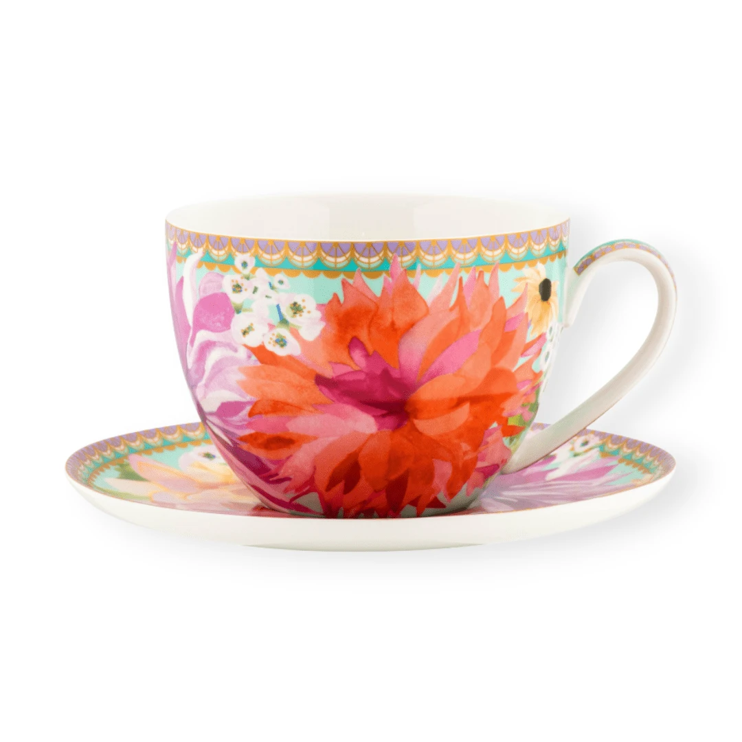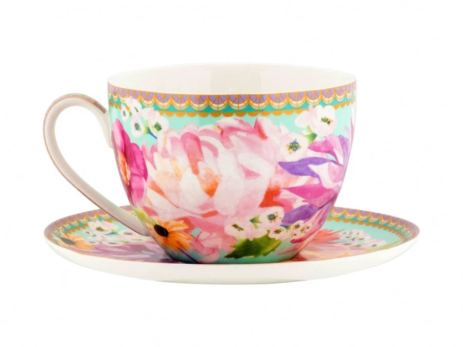 Maxwell & Williams Dahlia Daze Breakfast Cup & Saucer 400ML Sky 400ml HV0335