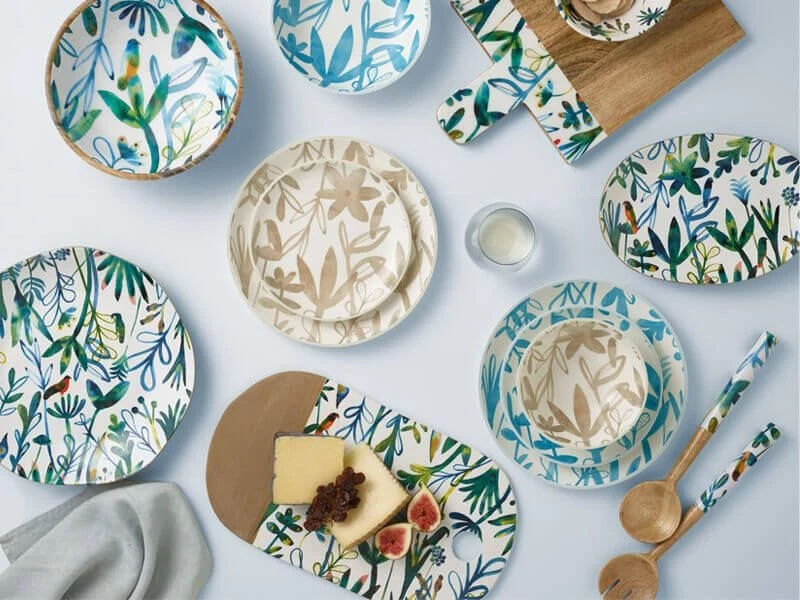 Created in collaboration with Melbourne artist Marc Martin, our Dusk range is a unique collection of elegant servingware and porcelain dinnerware. This range showcases the artist’s signature style with a design of lush flora and hidden fauna. Dusk includes elegant dinnerware and a selection of serving platters, boards and accessories crafted in stoneware and enamelled mango wood.