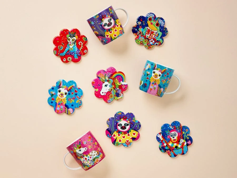 Rainbow Jungle is an exclusive collaboration with artist Donna Sharam. With the artist’s unmistakeable bold palette and quirky style, Rainbow Jungle is a riot of colourful animal characters. Designed for the contemporary family, this range includes a fantastic selection of mugs, coasters, double-walled insulated bottles and children’s dinner sets. Bright, fun and beautifully detailed, Rainbow Jungle will be a hit with adults and kids alike.
