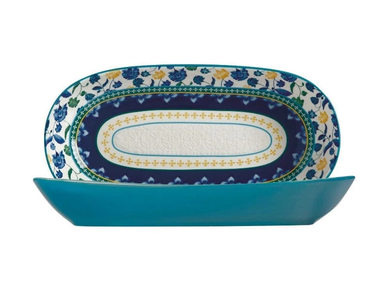 Inspired by the beauty of Indian saris, this unique collection takes traditional textile patterns and applies them to a range of stunning tableware. Rhapsody features intricate floral motifs adapted from a hand-painted design in a crisp, modern palette of teal, blue,yellow and white. Ideal for the contemporary entertainer, the range includes both loose dinnerware and gift boxed serving ware. The latter of which is beautifully finished with finely detailed borders and a gently embossed surface.