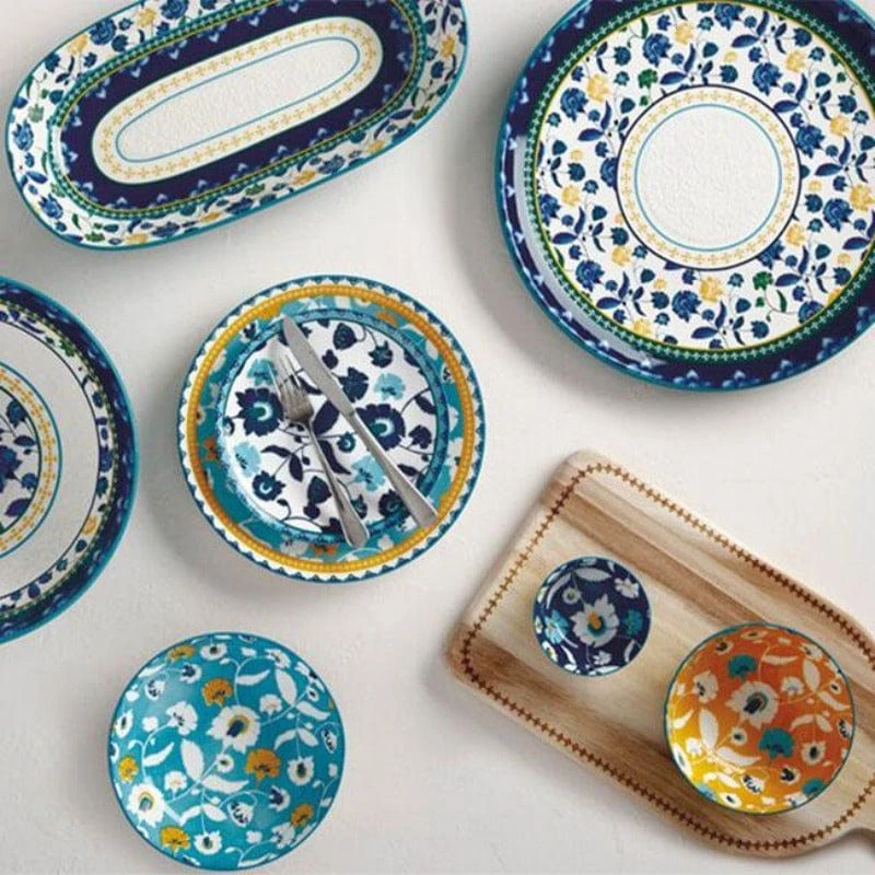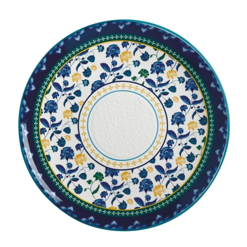 Inspired by the beauty of Indian saris, this unique collection takes traditional textile patterns and applies them to a range of stunning tableware. Rhapsody features intricate floral motifs adapted from a hand-painted design in a crisp, modern palette of teal, blue,yellow and white. Ideal for the contemporary entertainer, the range includes both loose dinnerware and gift boxed serving ware. The latter of which is beautifully finished with finely detailed borders and a gently embossed surface.