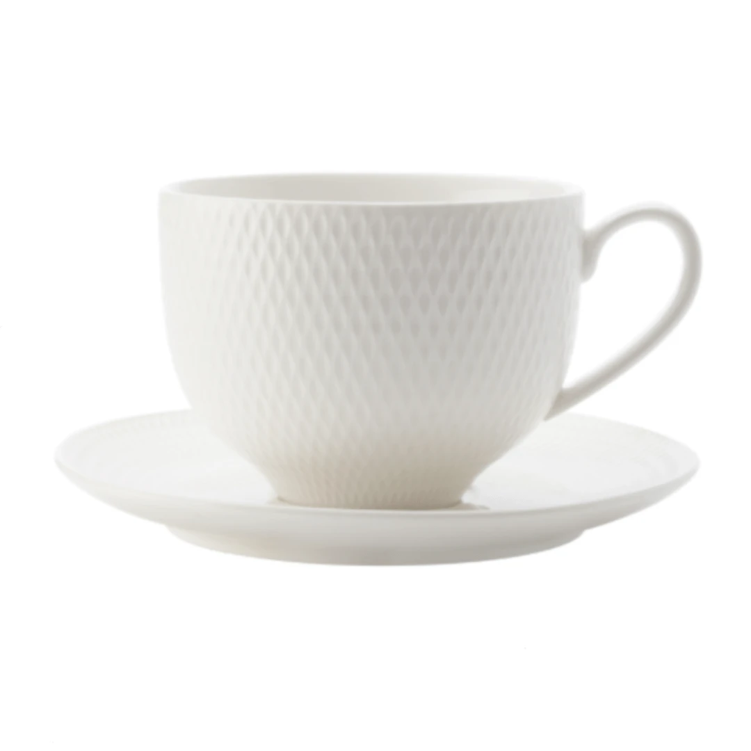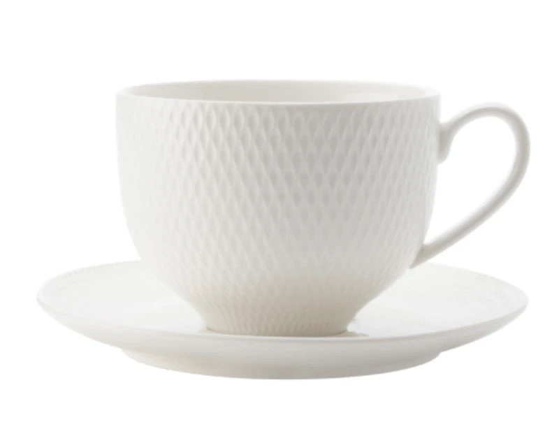This 220ml Diamonds Tea Cup & Saucer from Maxwell & Williams White Basics is designed with everyday use in mind. Made from durable porcelain, the White Basics collection is microwave and dishwasher safe. Matching teapots, mugs and teaware also available.