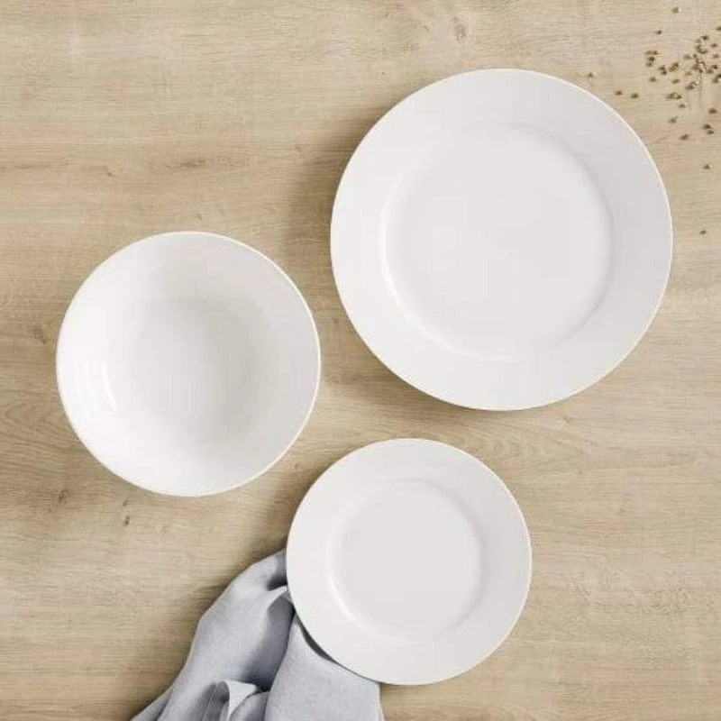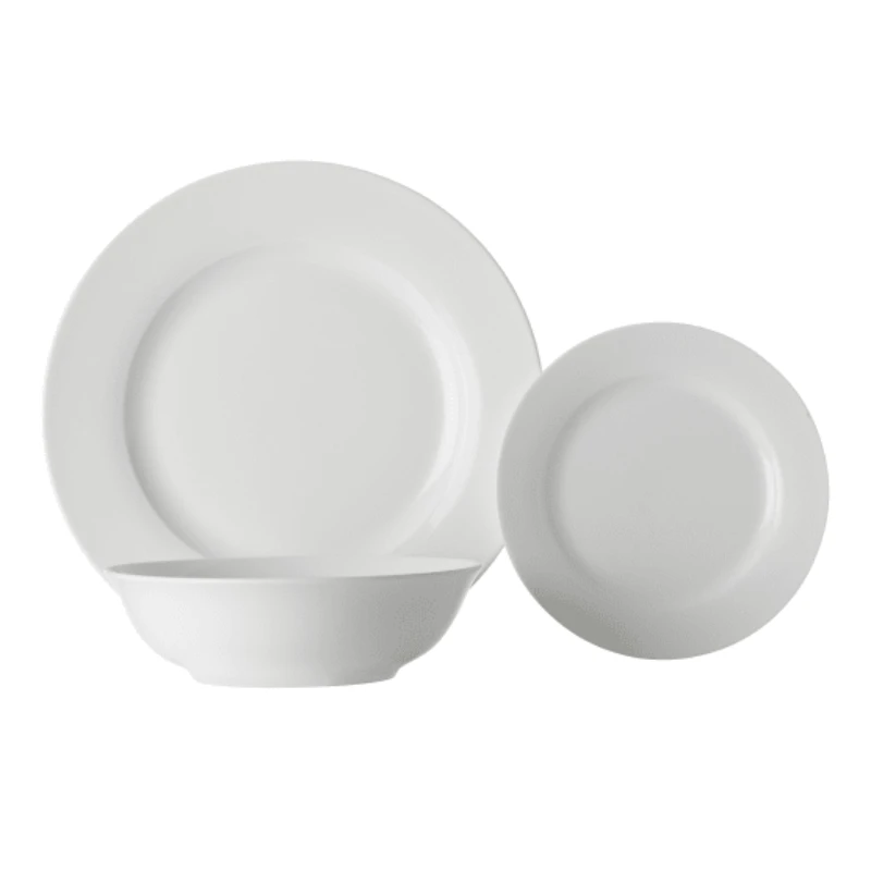 This 12 Piece European Rim Dinner Set from Maxwell & Williams is designed with everyday use in mind. Made from durable porcelain it is microwave and dishwasher safe. Contains: x4 Side Plates, x4 Dinner plates, x4 Bowls.